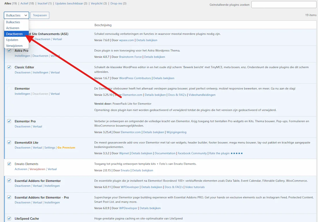 Heb je nog toegang tot de achterkant van je WordPress website? Beter! Dan kun je makkelijk alle plugins uitschakelen om de WordPress kritieke fout op te lossen.